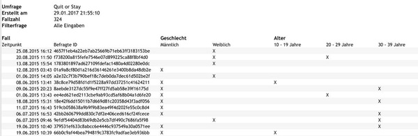 Hier ein Ausschnitt unsere Tutorial-Umfrage "Quit or Stay" ohne die "Kompakt"-Option: